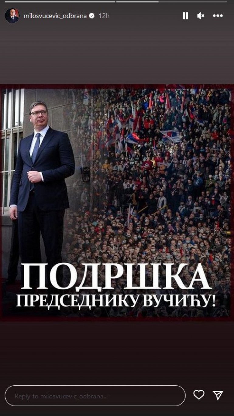 Наиме, он је на свом Инстаграм сторију оставио подршку председнику Републике.