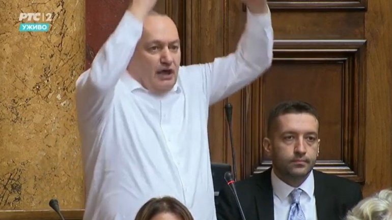 ДОК СРБИЈА ТУГУЈЕ, МИКЕТИЋ СЕ СМЕЈЕ: Срамно понашање Ђорђа Микетића на протесту