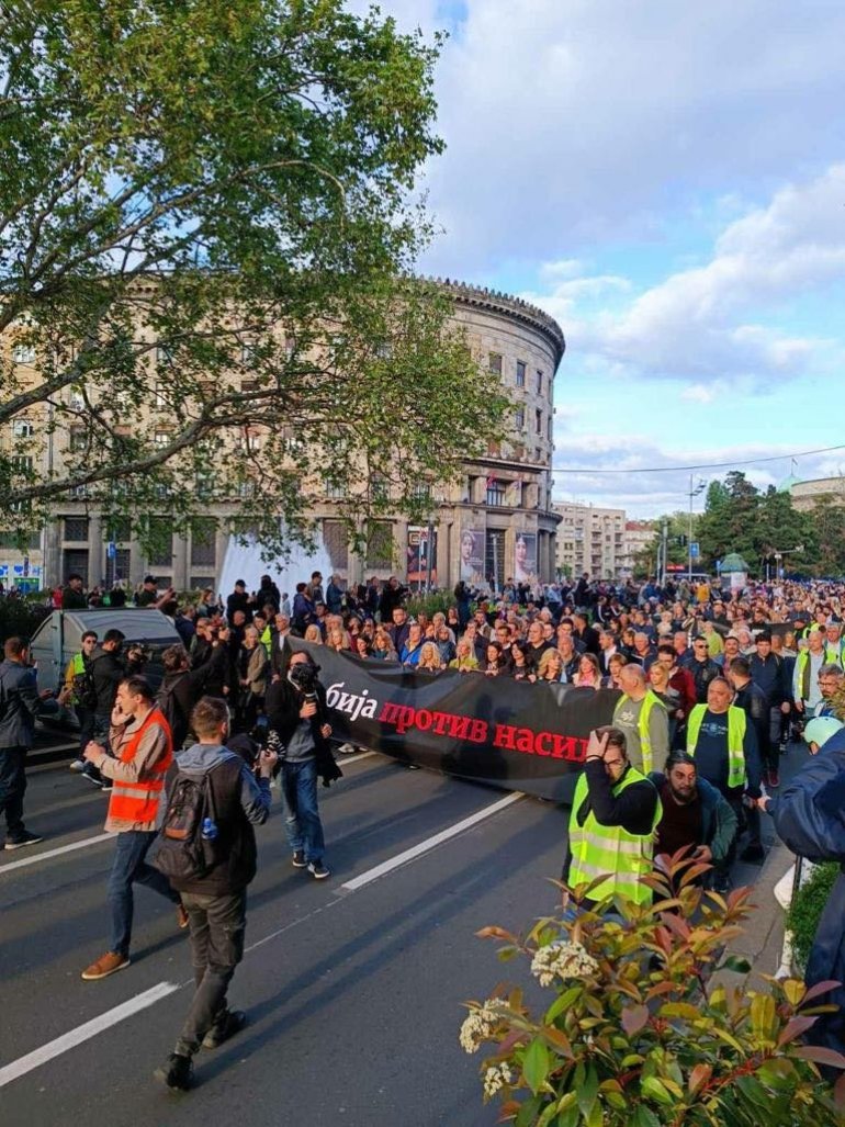 ШЕТЊОМ од Народне скупштине до зграде Владе Републике Србије у Београду је завршен протест политичких странака "Србија против насиља", организованом поводом трагедија у Београду и Младеновцу.