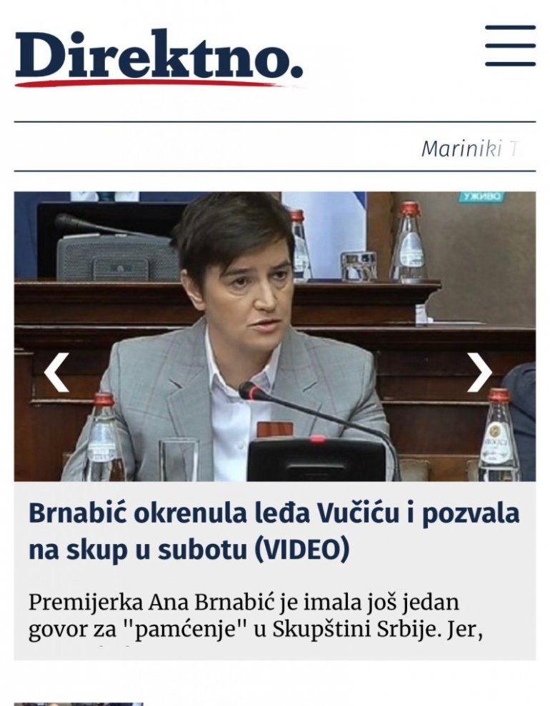 Наиме, иако се представљају као неко ко је за смиривање тензија у друштву, помирљив тон, без насиља и неистина, још једном су сами себе демантовали. Ана Брнабић је, према сопственим речима, као премијерка свих грађана у скупштини недвосмислено рекла да “је премијерка свих грађана” да позива посланике да “поздраве све скупове који се одржавају у нашој земљи јер су одраз демократије” и да “су грађани добро дошли и на скуп против насиља у суботу”. Она је затим наставила свој говор али су “независни медији” ту видели прилику за спиновање и направили видео у коме се ту њен говор завршава. Ево шта је премијерка рекла: