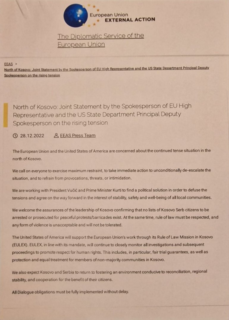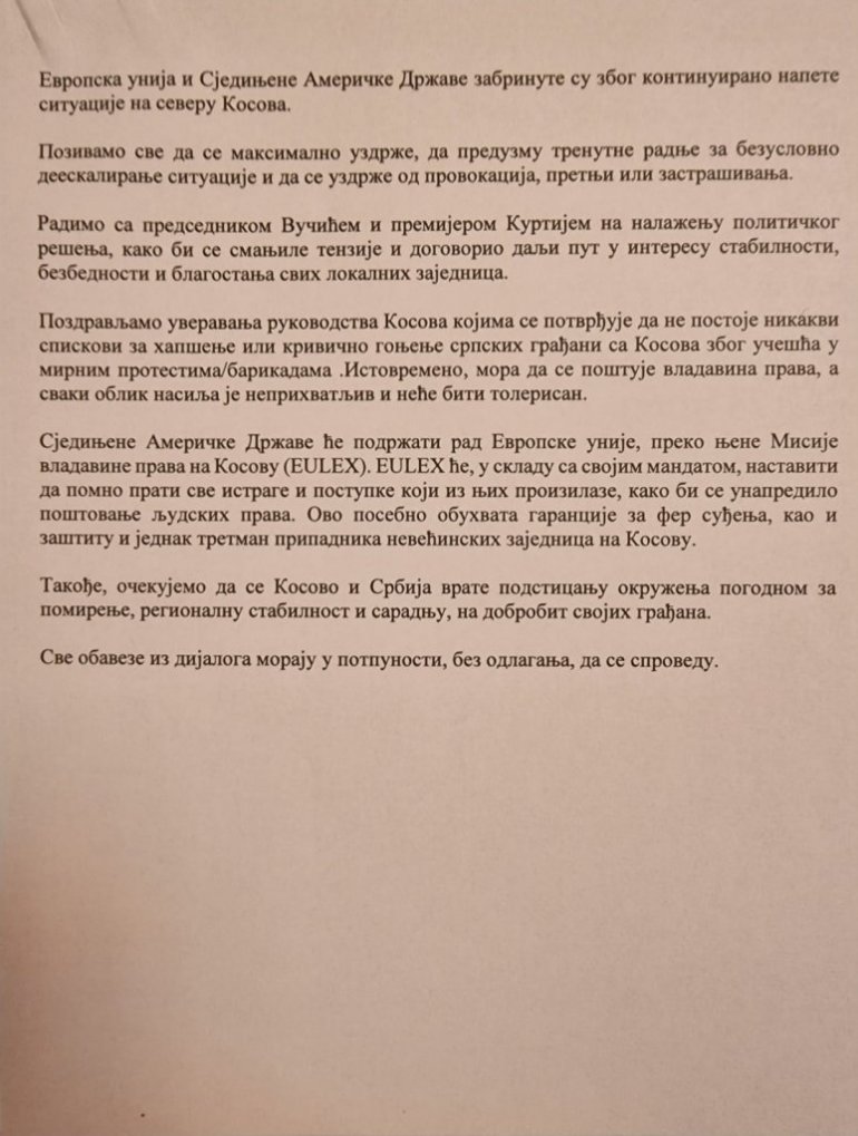 ЕУ и САД гарантовале су да Срби који су учествовали на протестима прошле године на Косову и Метохији, због терора који је спроводио (а и даље спроводи) Аљбин Курти и његов режим, неће бити хапшени, али је тај договор прекршен када је ухапшен Милун Миленковић-Луне.
