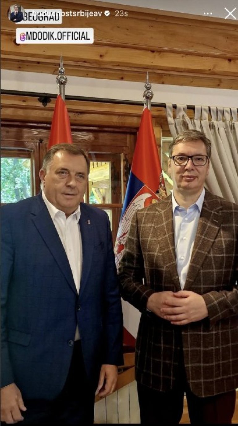 - Са председником Додиком сам разговарао о ситуацији у региону, предстојећим важним сусретима делагација Републике Србије и Републике Српске. Са посебном пажњом сам саслушао председника Додика поводом свих дешавања у РС и БиХ и договорили смо да у најкраћем року организујемо скуп свих државних органа Србије и Српске, на територији Републике Српске - објавио је председник на свом Инстаграм налогу.