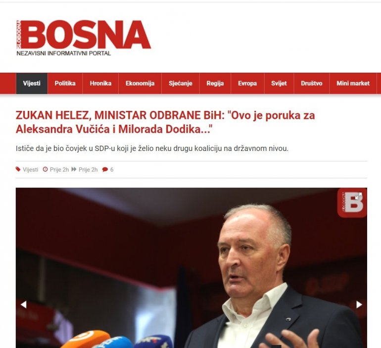 - Уз сву тираду бесмислица коју овога оута нисмо могли да игноришемо, Зукан Хелез није посветио ниједну реч доброј и садржајној сарадњи оружаних снага Србије и БиХ, пре свега у војно-образовној, али и у другим областима. Сигуран сам у то да ће таква добра сарадња бити настављена, па и унапређена у времену које је пред нама, упркос негативној реторици једног од три челника Министарства одбране БиХ - закључује министар.