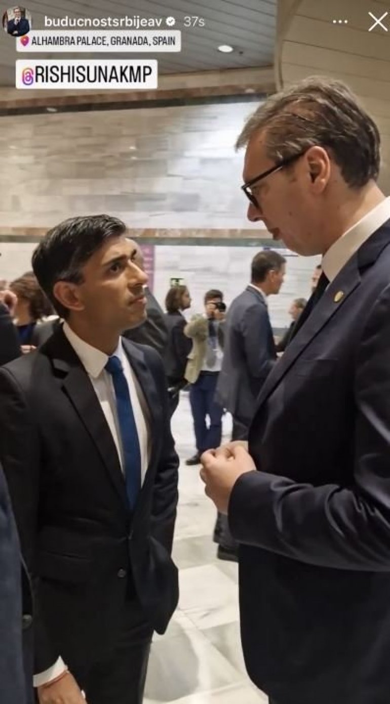 - Одличан разговор са премијером Сунаком @10доwнингстреет. Разговарали смо о ситуацији на Косову и Метохији, региону Западног Балкана и актуелним геополитичким приликама - написано је на званичном профилу "Будућност Србије АВ".