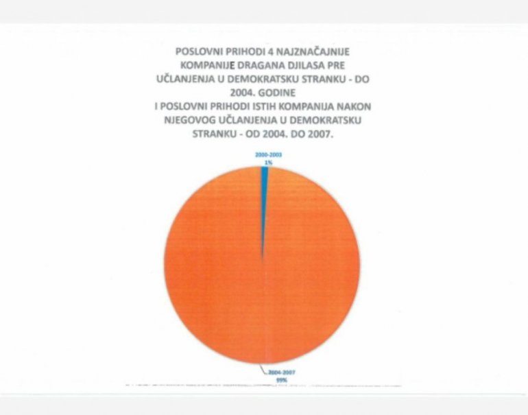 Колико су фирме Драгана Ђиласа профитирале, можете видети и по графикону који јасно бележи раст његових примања пре учлањена и наком учлањења у Демократску странку.