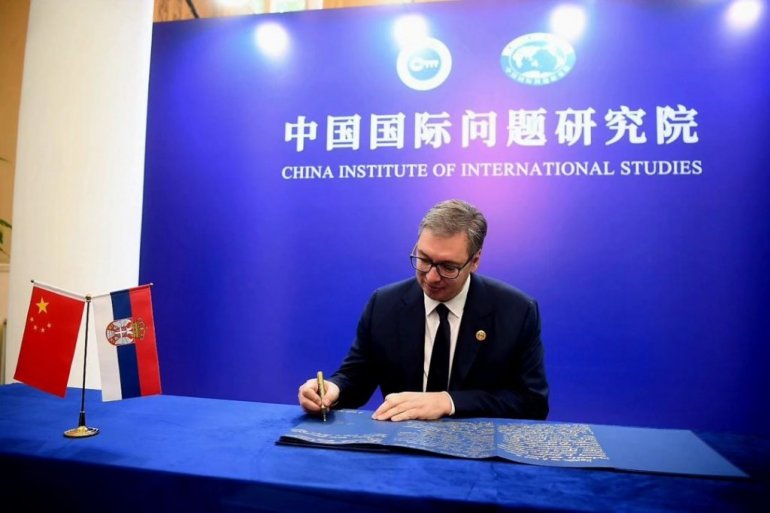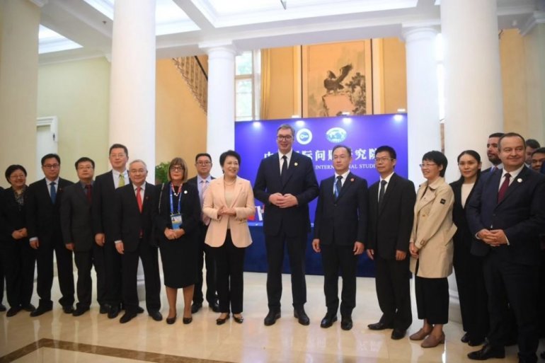 ПРЕДСЕДНИК Србије Александар Вучић обишао је Кинески институт за међународне студије у Кини.