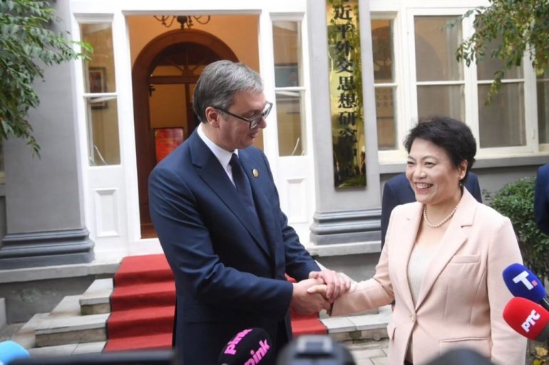 Вучић је приликом обиласка захвалио Чен Бо због подршке целовитости суверенитету, територијалном интегритету Србији и борби за КиМ и поклонио јој књигу о историји Косова и Метохије.