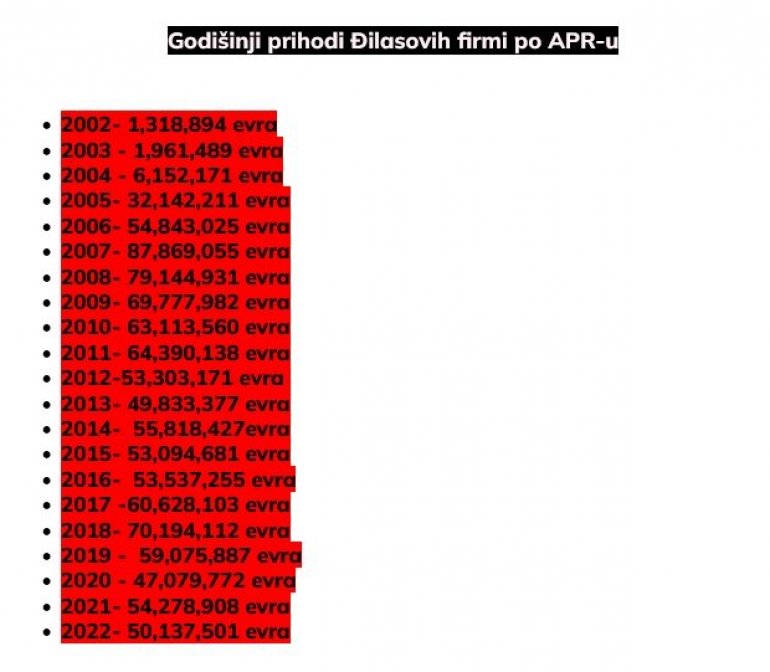 У наставку текста прилажемо документа из АПР-а која показују тачан приход Ђиласових фирми у протеклих 20 година.