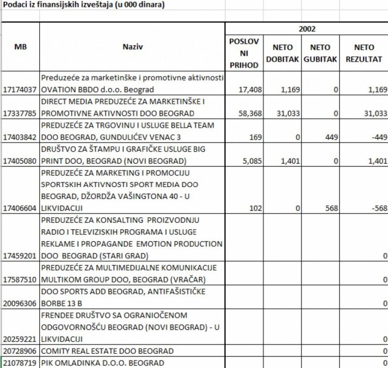 ДИРЕЦТ МЕДИА ПРЕДУЗЕЋЕ ЗА МАРКЕТИНШКЕ И ПРОМОТИВНЕ АКТИВНОСТИ ДОО БЕОГРАД- 5,591,002.000 динара