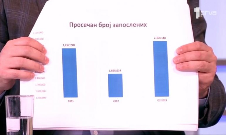 - После Милошевића било је изузетно тешко. Тада је било 2.250.000 запослених. 10 година касније смо имали милион и осамсто хиљада. А данас имамо више од 2.300.000. Ово је лична карта свакога од нас! Ово смо радили све године. Ми смо у то улагали, овим се хвалимо. Када то имамо, онда можемо да причамо о свему осталом. Зато је потребна здрава економија - истакао је Вучић.