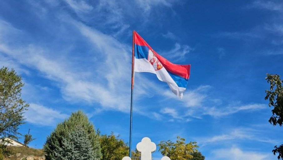 ПОНОСНО СЕ ВИЈОРИ: Враћена српска тробојка на споменик код Ораховца (ФОТО/ВИДЕО)