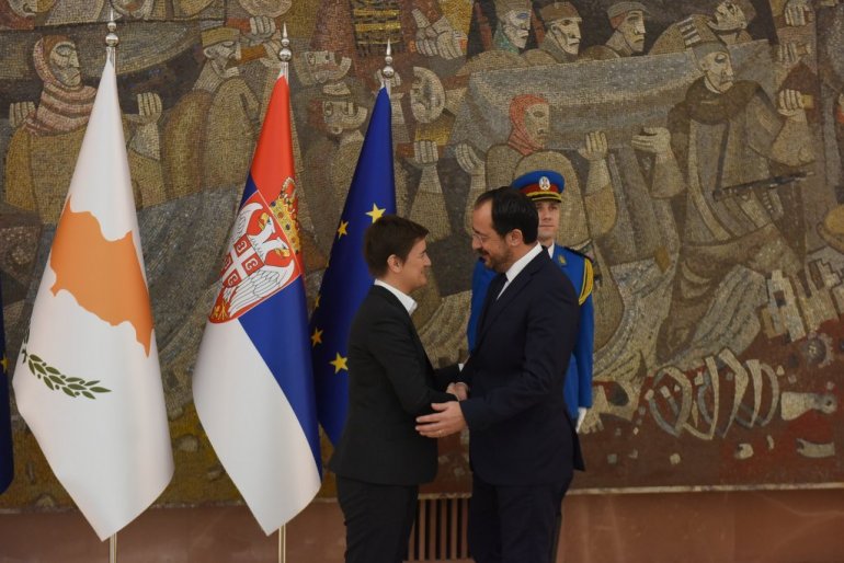 ПРЕДСЕДНИЦА Владе Србије Ана Брнабић разговарала је данас са председником Републике Кипар Никосом Христодулидисом и оценила да две земље повезују чврсто пријатељство, историјски потврђена блискост и солидарност два народа, утемељена на пуном разумевању и дугогодишњој узајамној подршци.