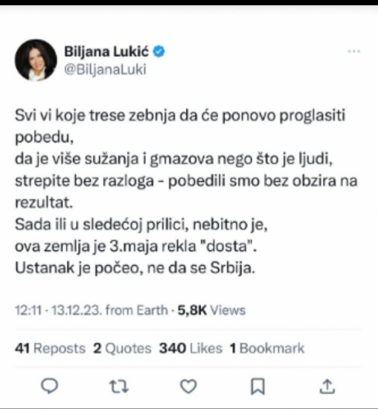 Биљана Лукић, опозициона новинарка, каже да је 3.маја "почео устанак".