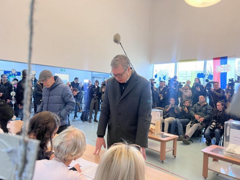 - Када кажем убедљиву победу, верујем да ће листа "Србија не сме да стане" бити близу апсолутне већине или ће имати апсолутну већину. И мислим да је то важан услов да би Србија наставила путем просперитета и успеха - рекао је Вучић после гласања на бирачком месту на Новом Београду.