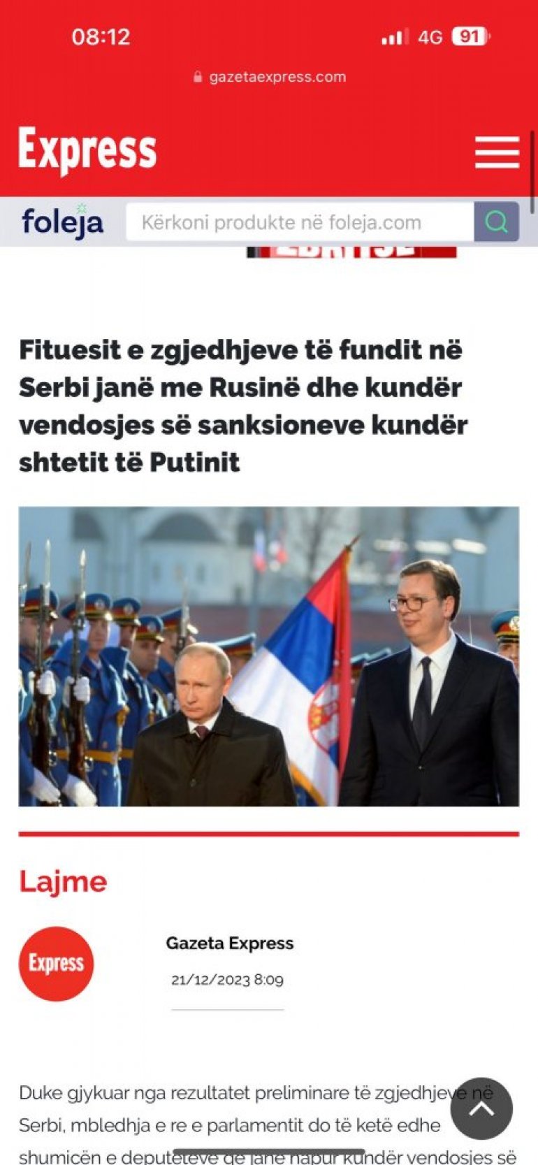 Наиме, Газета Експрес преноси текст под насловом "Победници последњих избора у Србији су уз Русију и против увођења санкција Путиновој земљи".