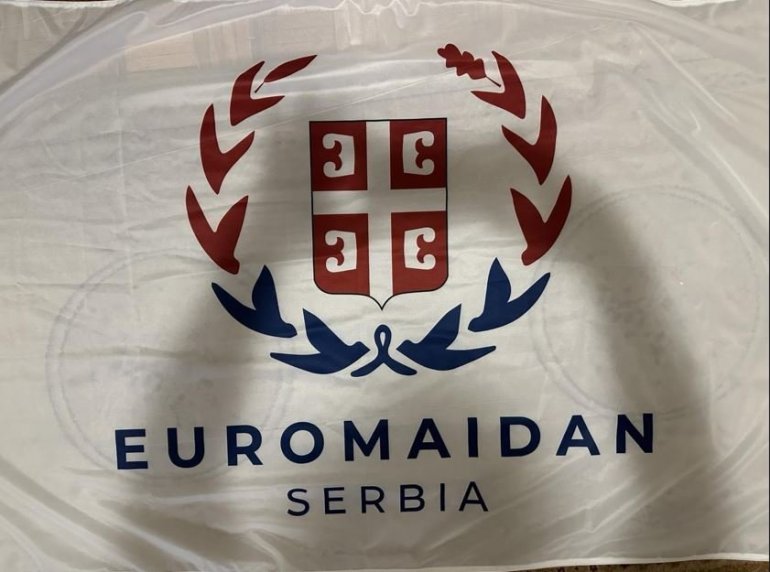 Наиме, на протесту се вијорила и застава на којој је писало "EUROMAIDAN Serbia".