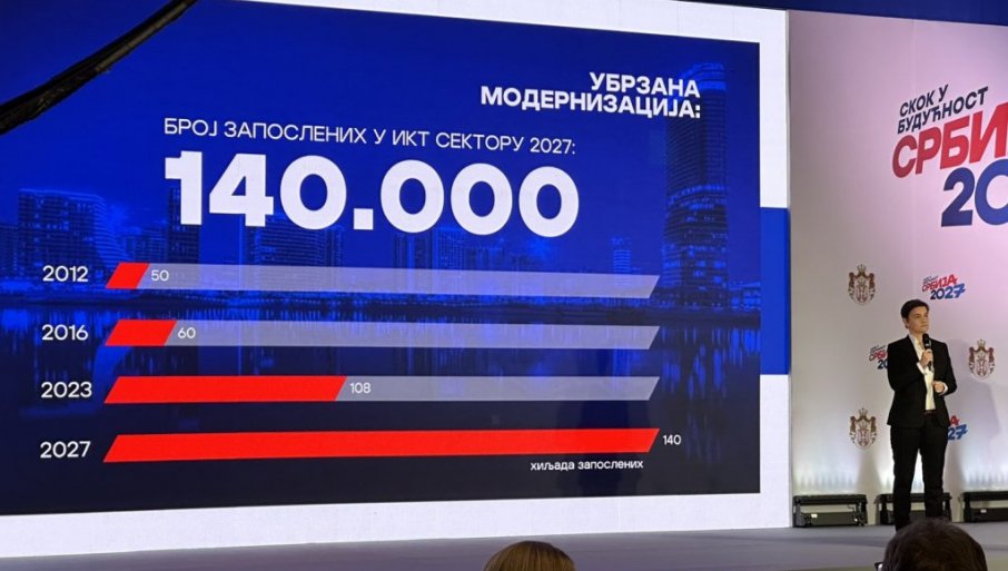 - А оно што ћемо урадити до 2027. године ће бити квантни скок у односу на све до сада. Наш извоз 2027. године ће бити 10 милијарди евра. Како да додатно развијемо напредне технологије? Два су фокуса - биотехнологија и вештачка интелигенција - рекла је премијерка, и препустила реч министарки Јелени Беговић.