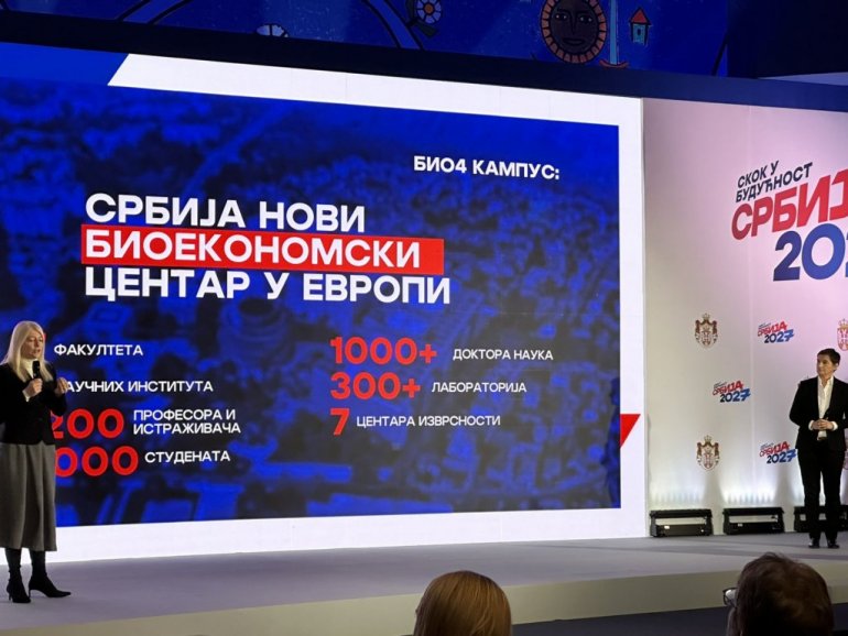 - Ово је највеће улагање у младе икада у нашој земљи. 450 милиона евра се улаже у изградњу БИО4 кампуса. Ту ће радити наши најбољи истраживачи, професори, наши таленти и наше компаније. То ће довести до доступности модерних лекова, терапија, ефикасније пољопривреде и здравије животне средине. То ће омогућити и да спречимо одлазак наших најбољих и најпаметнијих. Да наши млади постану активни учесници у грађењу боље будућности Србије - казала је она.