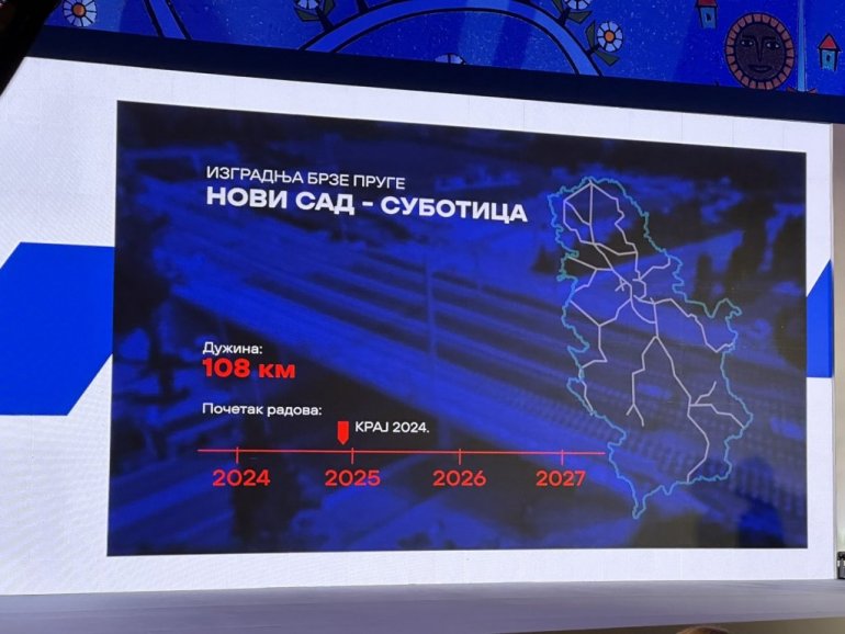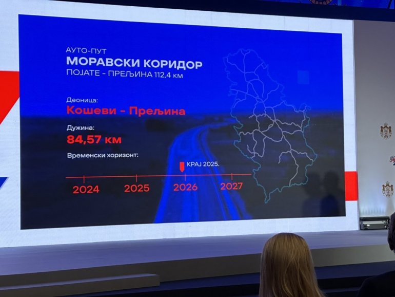 - А од 1945. до 2012. године је изграђено готово дупло мање. Остало нам је од Кошева до Прељине, деоницу, биће готова до 2025. године. Следећи је Паковраће-Пожега, остало нам је 19,5 км, и то ће бити готово до 1. октобра ове године. Деоница Сремска Рача-Кузмин у дужини од 19 км, са мостом у Сремској Рачи, бити завршена до краја 2025. године. Фрушкогорски коридор, укупно 47,5 км, биће урађен до јуна 2026. године - рекао је он.