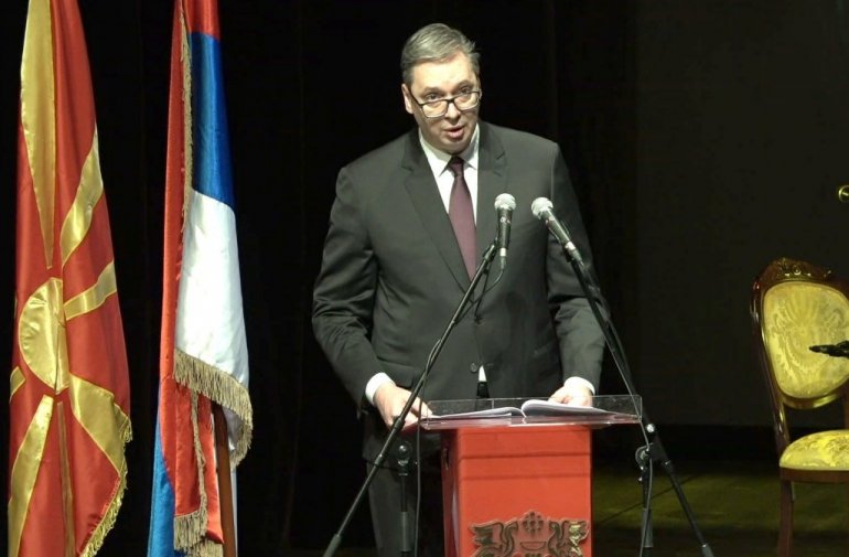 - Следећи мисао наших великана ми враћамо свој дуг Светом Сави, градећи школе, универзитете. Ја бих додао само још неколико речи, о добрим људима који живе у Северној Македонији, и нашој браћи Македонцима. Ово ми нису писали, сам ћу рећи то. Председник сам Србије и не плашим се да кажем. Нама су Македонци најближи народ, ми ближе од Македонаца немамо. То нескривено и јасно кажем свима, и ништа не тражимо од ваше земље - казао је он.