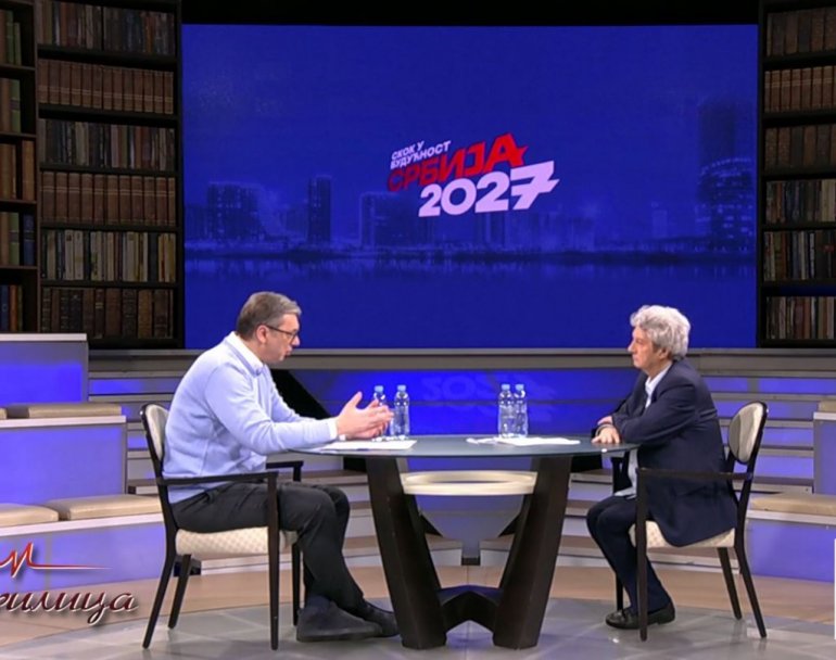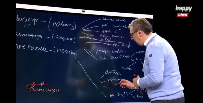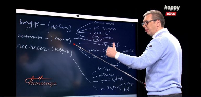 ПРЕДСЕДНИК Србије Александар Вучић гостовао је вечерас у емисији "Ћирилица" на телевизији Хепи код водитеља Миломира Марића.