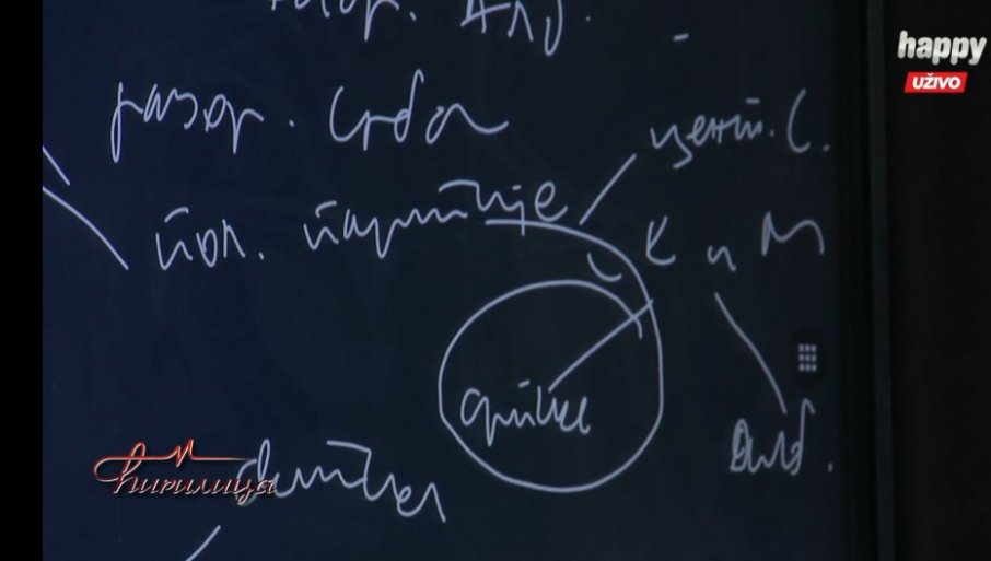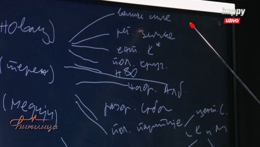 Председник је на табли у студију нацртао шему.