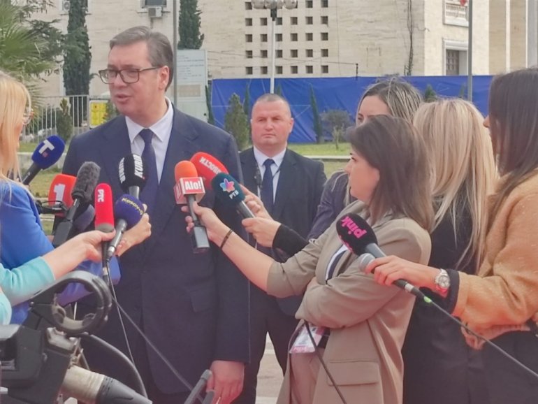 - То је наша политика, или имате политику или немате политику. Нити сте ви било какав херој, нити било чији послушник. Ту за нас нема лаких ствари. Једино што можете да радите јесте да се борите за своју политику. И то је оно што сам радио данас. Ми данас имамо још много посла. Не заборавите да већ од поподне од 7 сати, сада се завршава Самит Југоисточна Европа, нама иде самит Западни Балкан - Европска унија. Иду приче о јединственом тржишту, напретку ка Европи и тако даље. Пре свега приче које су реалне. Има овде оних што сањају снове да ће прекосутра да уђу у ЕУ. Ја да се правим глуп и блесав пред нашим народом не могу. Имамо много важних ствари са ЕУ да радимо, од заједничког тржишта, преко зелених коридора, ПЕН конвенције... Да ја то објасним народу. Ако доведемо произвођача аутомобила, а не можемо да га доведемо јер не може 55 одсто делова да прави у Србији, ако нема тих 55 посто, а ми нисмо у ЕУ, онда када извози у земље Еврпске уније, иде 10 одсто дажбина додатних на то. Онда се никоме не исплати да производи у Србији. Бавимо се тим стварима, јер онда можемо да привучемо и Јапанце, Корејце и Немце. То су ствари које су за нас много важније него њихов новац. Ако то успемо да урадимо до краја године, то су велики резултати - навео је Вучић одговарајући на питање наше новинарке.