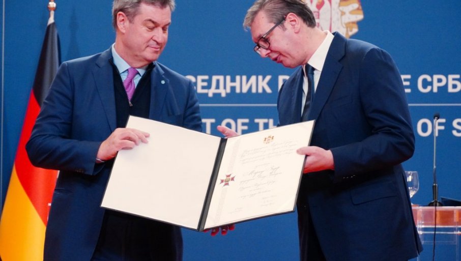 Председник Александар Вучић уручио је данас председнику Владе Баварске Маркусу Зедеру Орден Републике Србије на ленти.