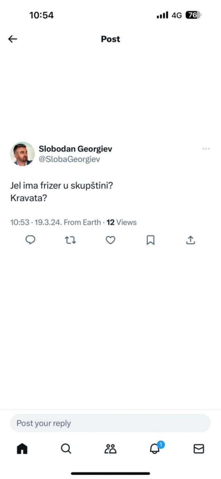 Наиме, Слободан Георгиев је на свом званичном Икс налогу објавио: