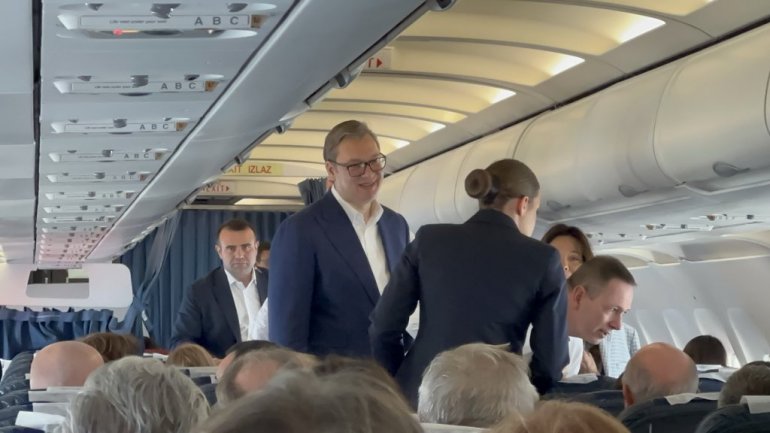 ВУЧИЋ РАЗГОВАРАО СА ПУТНИЦИМА: Председник на првом лету за Мостар - Авион слетео, следи церемонија (ФОТО/ВИДЕО)