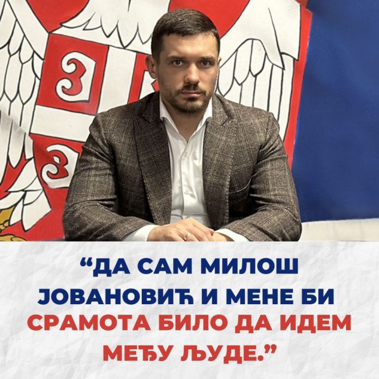 "Пропали политичар и француски потрчко Милош Јовановић, услед страха од поновног пораза на изборима не престаје са политиком лажи. Овог пута прилику је искористио у Народној скупштини, док је седница организована да би се опозицији изашло у сусрет.