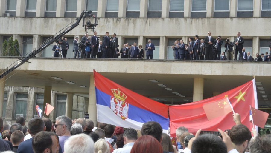 ПРЕДСЕДНИК Србије Александар Вучић и председник Кине Си Ђипинг поздравили су окупљени народ испред Палате "Србија".