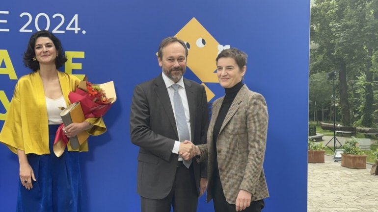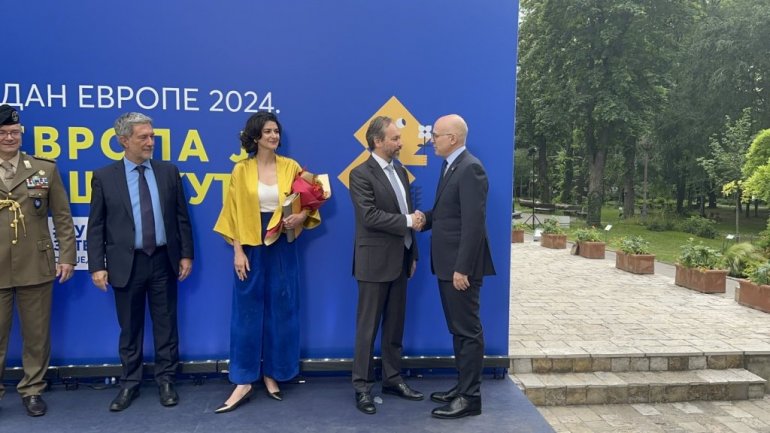 После химне, присутнима се обратио Емануел Жиофре, амбасадор ЕУ у Београду.