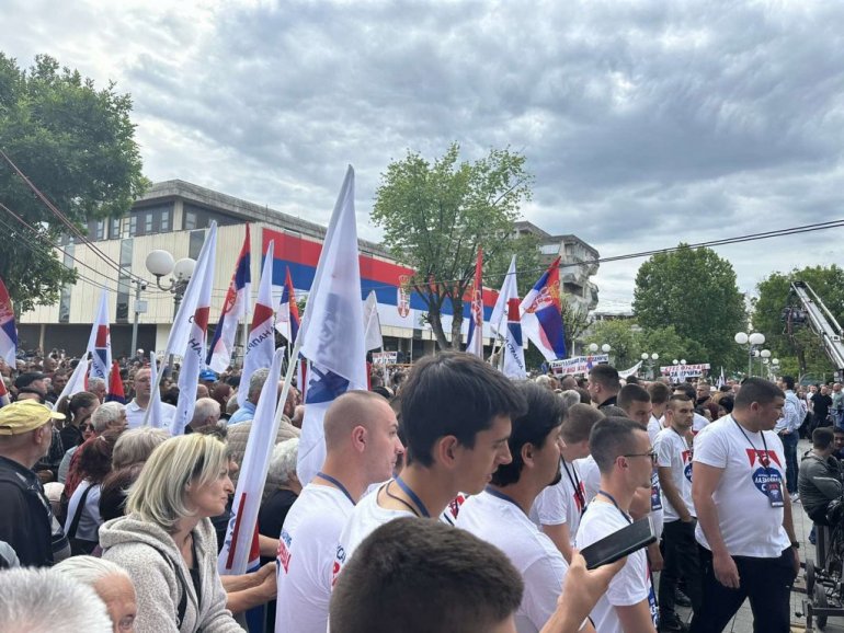 На печашкој зони где ће се одржати митинг, већ се окупио велики брох грађана који желе изразити своју подршку листи СНС-а.
