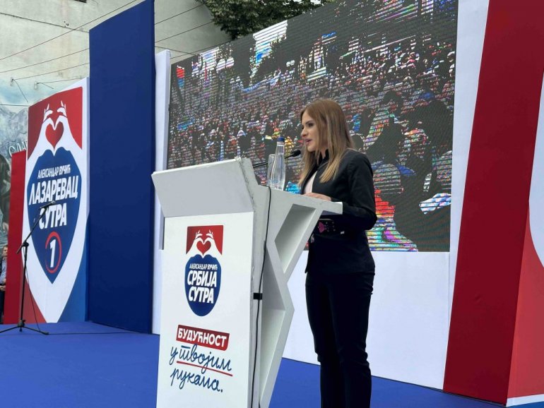 - То је битка коју ми водима. Битка за нашу децу је битка коју Србија не сме да изгуби. Све наше породице су гнезда орлова, оне су најважнији национални интрес. Не желим да причамо о поделама, једини циљ свих нас је да победи интерес наше Србије, да победи живот и рађање, и да победи Србија... - казала је она.