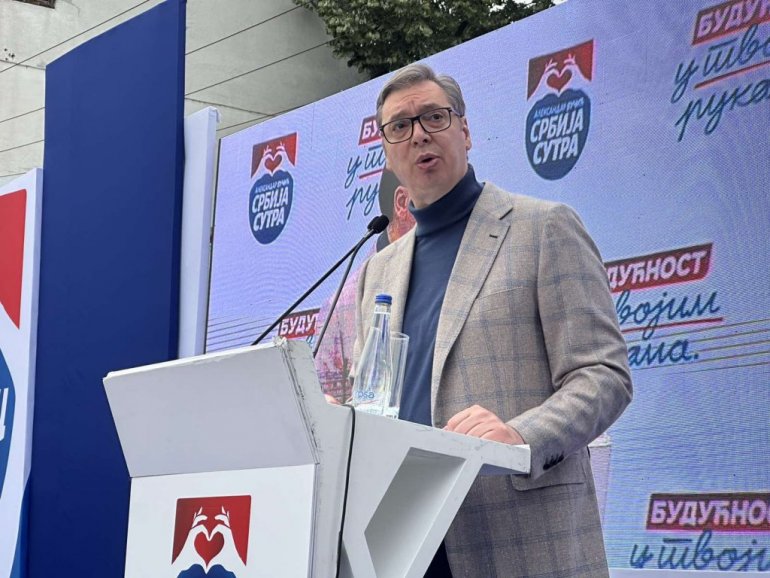 - Ја ћу бити концетрисан на велике притиске којима смо изложени, тек у финишу моћићу да помогнем својим пријатељима... Немојте ни једног секунда да је сигурно и да смо победили... Важно је да изађете на изборе и зато вас молим да 2. јуна гласате за Србију сутра, а ја вам гарантујем само једно, то је да ћу се заједно са вама борити за Србију. Можемо ли да победимо велике силе, па тешко, али видећете и они ће тешко да победе Србију, а сачуваћемо образ и усправне главе ћемо моћи да изађемо из зграде УН, на сваком месту у свету да поносно носимо српску тробојку и свакоме кажемо да долазимо из слободарске Србије, а онда да радимо још више, да радимо још напорније, да подижемо Србију, да се боримо за сваку кућу да буде богатија у нашој земљи и да наша деца имају овде будућност и да наша деца занју да овде могу да одрастају, да овде стварају породице - рекао је Вучић те додао да је данас први пут имао разговор са великим и моћним универзитетом из света који жели да доведе у Србију и Београду, јер жели да све најбоље школе имамо овде како деца не би ослазила због школовања.