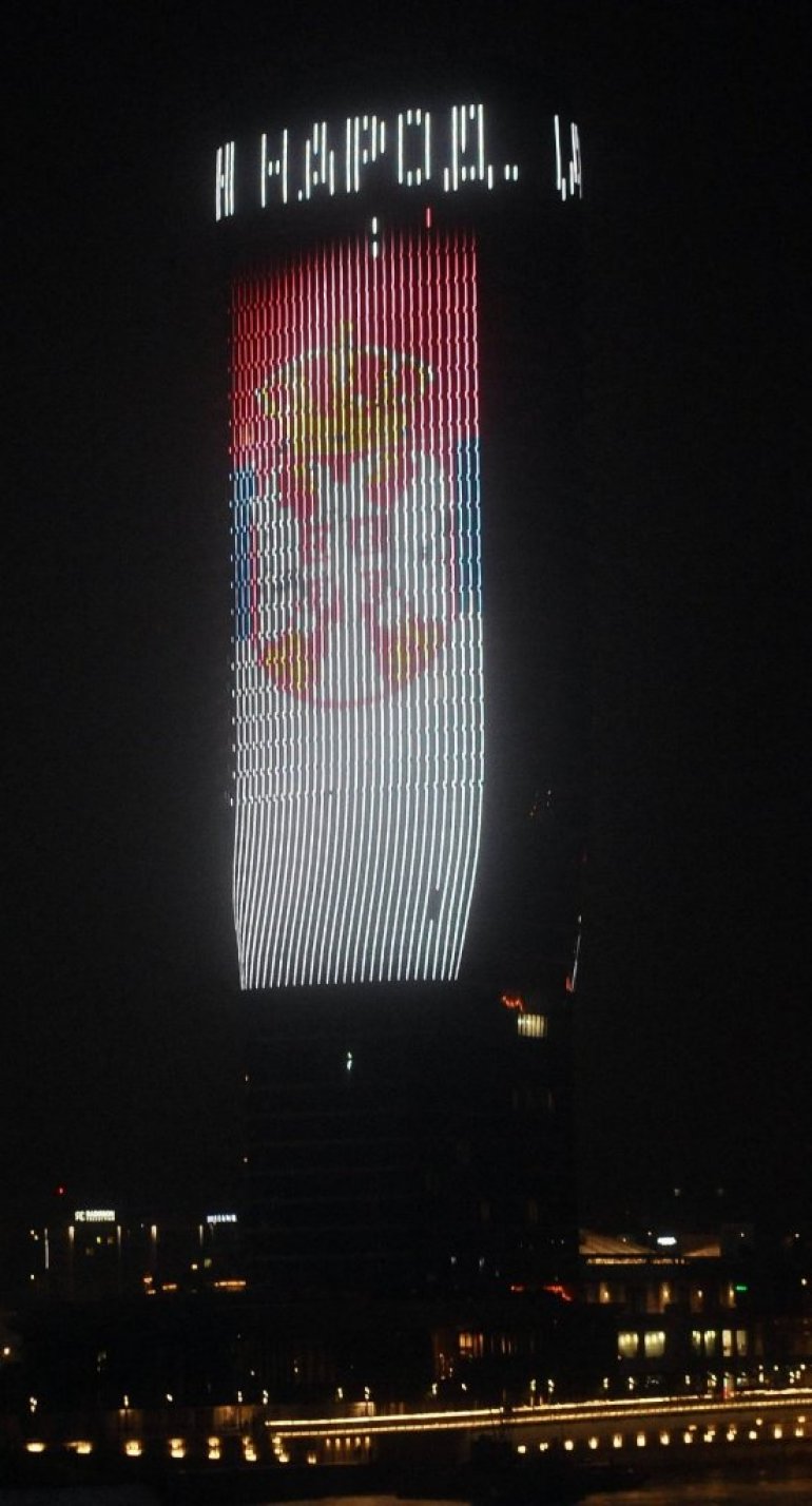Такође, у бојама заставе вечерас светли и зграда Скај лајна.