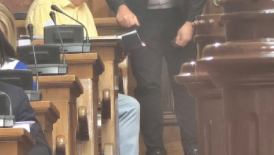 Наиме, Несторовићев посланик Александар Павић усликан је како на веома присан начин разговара са послаником Демократске странке Срђаном Миливојевићем у Скупштинии Србије.