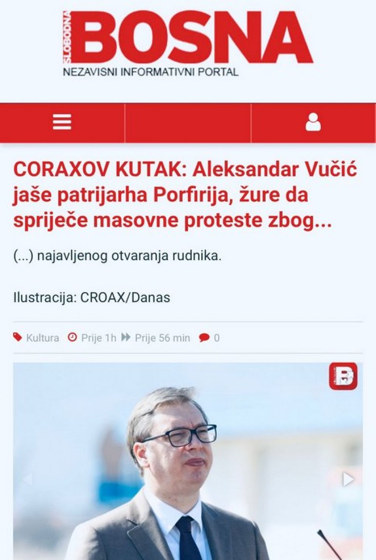 Ова гнусна карикатура крунски је доказ да су се опозиција у Србији, тајкун Шолак и босански исламисти ујединили у остварењу заједничког циља: по сваку цену спречити Србију да коришћењем литијума доживи економски процват после ког више нико из региона не би могао да је стигне.