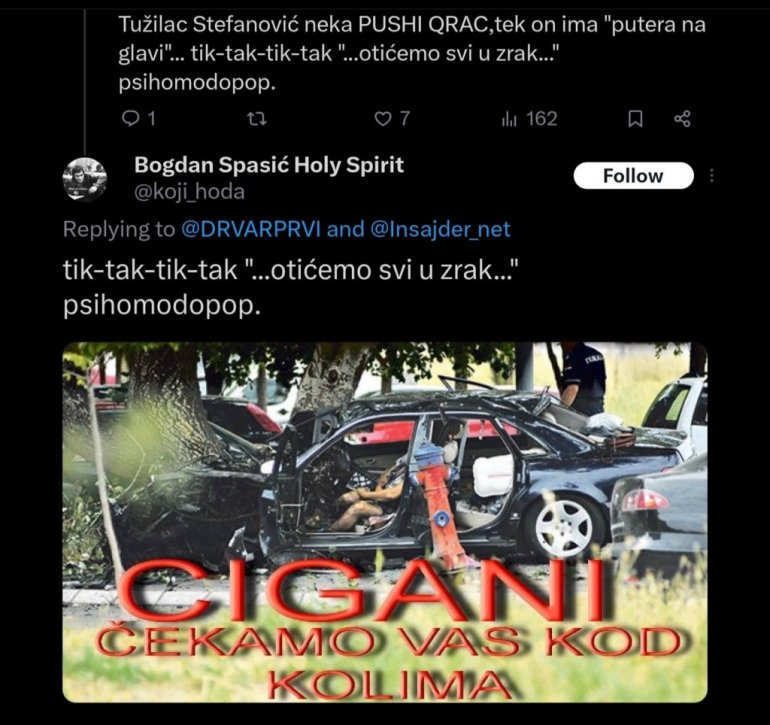 ПРЕТИЛИ ДИЗАЊЕМ АУТОМОБИЛА У ВАЗДУХ: Стравичне речи екстремиста тужиоцу Стефановићу уочи протеста лажних еколога у Београду (ФОТО)