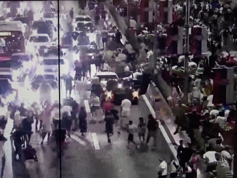 Како се може видети на снимцима, руља је кренула да прескаче ограду и улази на мост, а том приликом дошло је до тешког судара два возила.