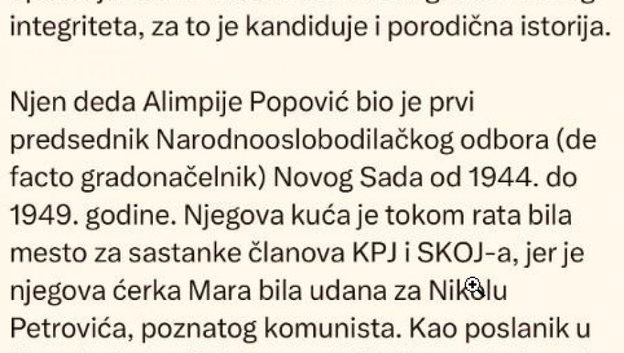 Наиме, твитераш Коста Константиновић, преко кога Ђилас и Тепићева често пласирају своје ставове, предложио је да Поповићева стане на чело опозиције јер има добру породичну историју, пуну комунистичких функционера који су чак хтели и да “реформишу” Српску православну цркву.