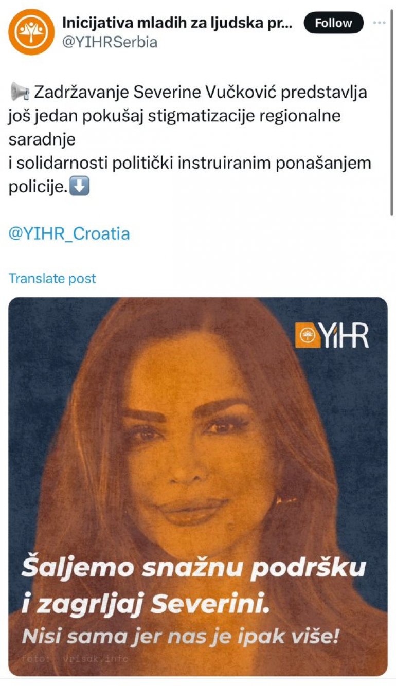 . Након кампање да се у Сребреници догодио “геноцид”, организовања фестивала Мирдита, који тзв. Косово третира као државу, подршке насилном рушењу власти од стране про-НАТО опозиције, сада су подржали и Северину и њене антисрпске ставове.