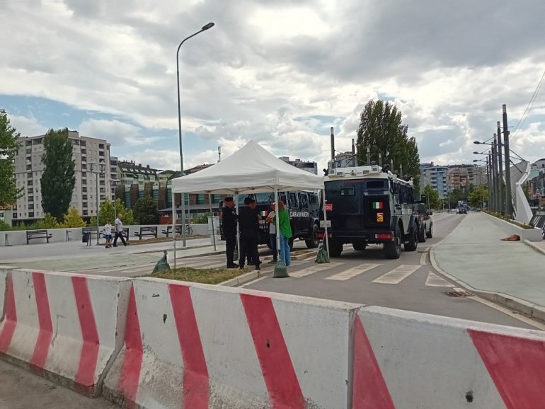 ТРЕЋИ ДАН БЛОКИРАНЕ СРПСКЕ ИНСТИТУЦИЈЕ У МИТРОВИЦИ: На мосту преко Ибра појачано присуство Кфора
