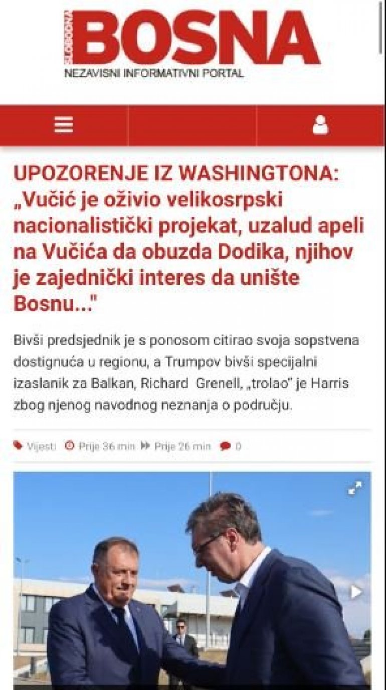 Наиме, како се може видети, на порталу поменутог медија освануо је текст под називом "Упозорење из Вашингтона: Вучић је оживео великосрпски националистички пројекат, узалуд апели на Вучића да обузда Додика, њихов је заједнички интерес да униште Босну...", у коме је Едвард Џозеф навео да је "Вучић отворено оживео великосрпски националистички пројекат који је Југославију одвео у рат пре три деценије".