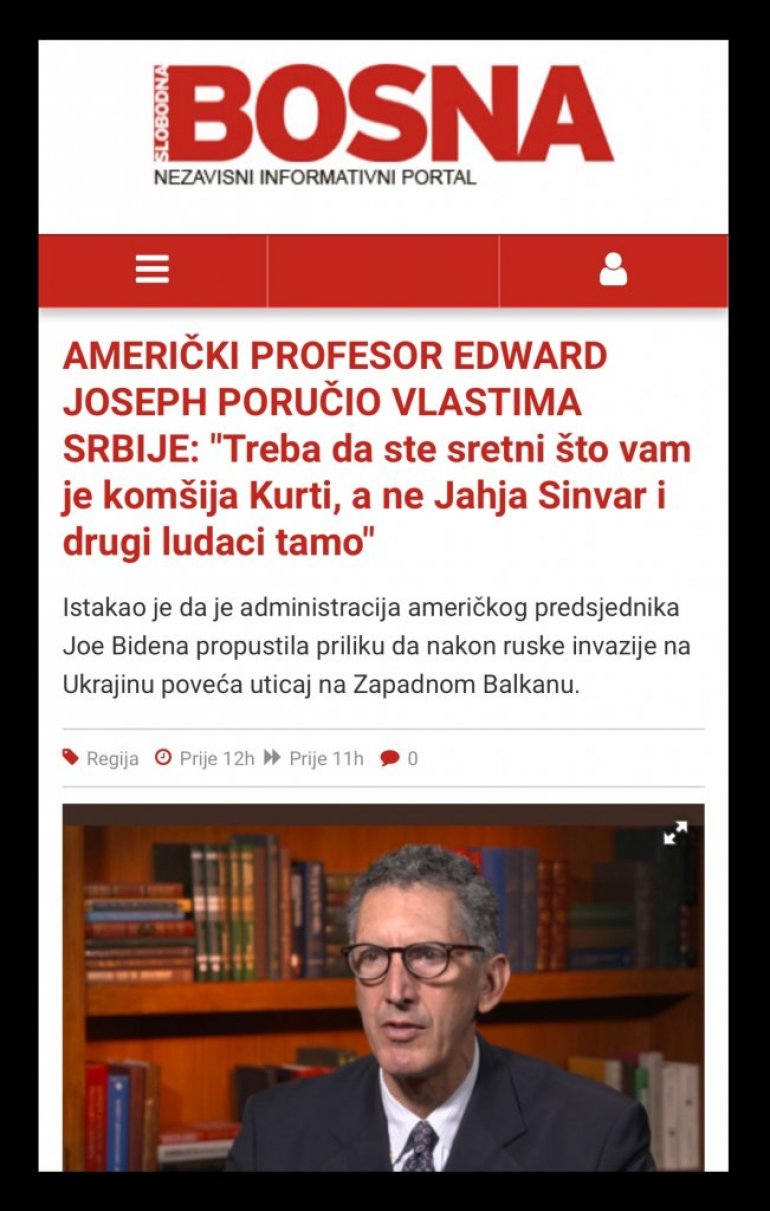 Како наводи "Слободна Босна", Џозеф је поручио Србима да треба да буду срећни што их Аљбин Курти терорише.