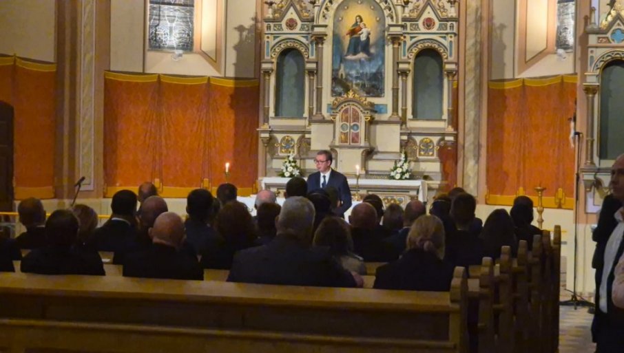Вучић и Шујок стигли су у Цркву Снежне Госпе. Потом је почео обред благосиљања.