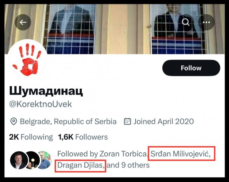 Овај профил, који прате Ђилас и Миливојевић, објављује на Иксу приватне податке тих људи: њихове фотографије, адресе, чак и бројеве телефона.