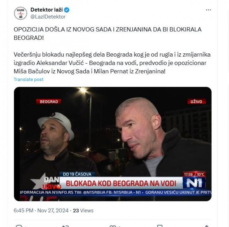 ВЕЧЕРАШЊУ блокаду најлепшег дела Београда који је од ругла и из змијарника изградио Александар Вучић - Београда на води, предводио је опозиционар Миша Бачулов из Новог Сада и Милан Пернат из Зрењанина!