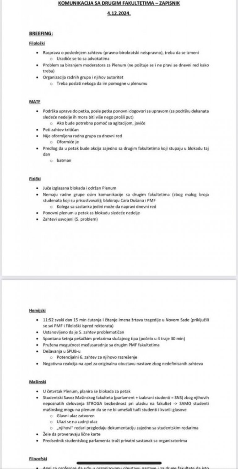 Наша редакција је дошла у посед записника под називом „Комуникација са другим факултетима“, из чије садржине се недвосмислено може закључити да актуелни „студентски“ протести уопште нису организовани од стране студената, а још мање спонтани, већ се ради о још једном подмуклом покушају преваре народа од стране лидера прозападне опозиције.